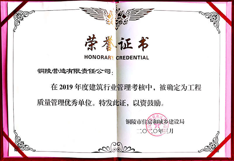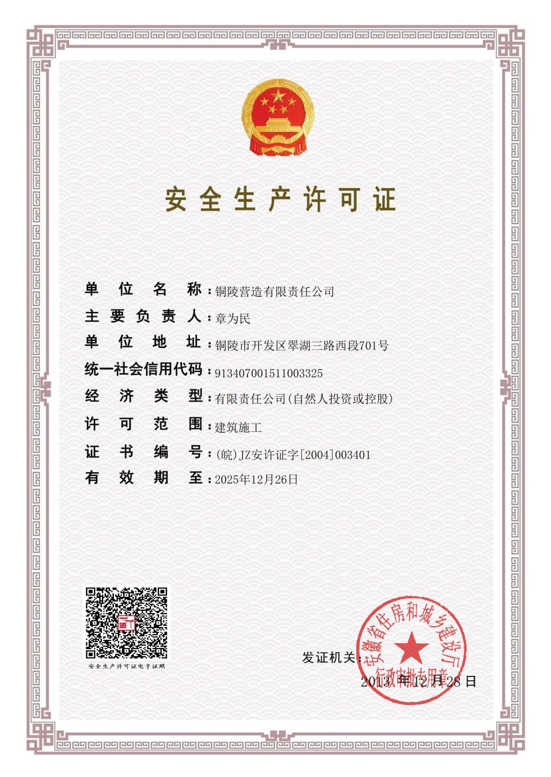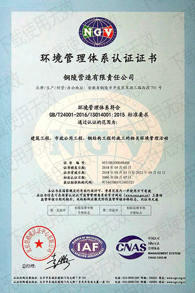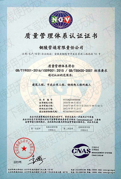 銅陵?duì)I造有限責(zé)任公司是國(guó)家住建部核準(zhǔn)的房屋建筑總承包一級(jí)企業(yè)。2006年7月,企業(yè)二次改制為民營(yíng)企業(yè),并更名為“銅陵?duì)I造有限責(zé)任公司”。目前,公司擁有房建施工總承包、市政公用工程總承包、鋼結(jié)構(gòu)專業(yè)工程承包、建筑裝修裝飾專業(yè)工程承包四項(xiàng)壹級(jí)資質(zhì),機(jī)電安裝、起重設(shè)備安裝、建筑幕墻三項(xiàng)貳級(jí)資質(zhì),地基與基礎(chǔ)一項(xiàng)叁級(jí)資質(zhì)。2008年通過(guò)北京恩格威ISO9001、ISO14001和OHSAS18001“三合一”體系認(rèn)證。